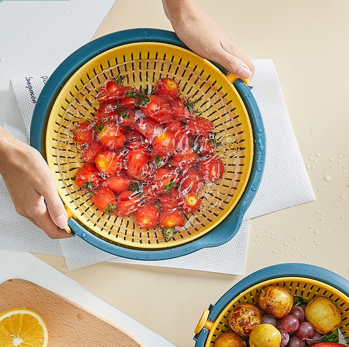 Household Vegetable Washing Kitchen Double Layer Flip Drain Basket
